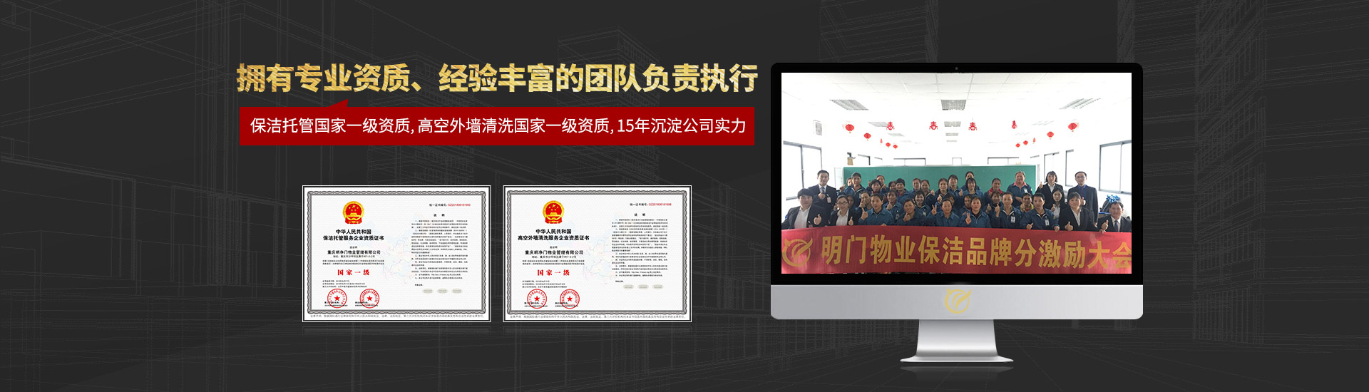 現有員工800多名,100%持證上崗,更有外墻清洗、開荒清潔等專業服務人員200余名